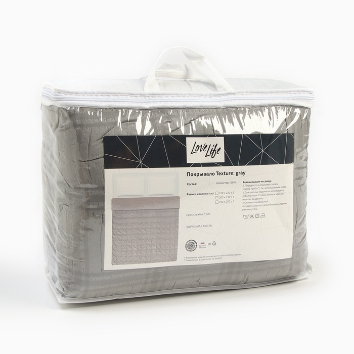 Покрывало евро LoveLife Texture: gray, 240×230±5 см, микрофайбер