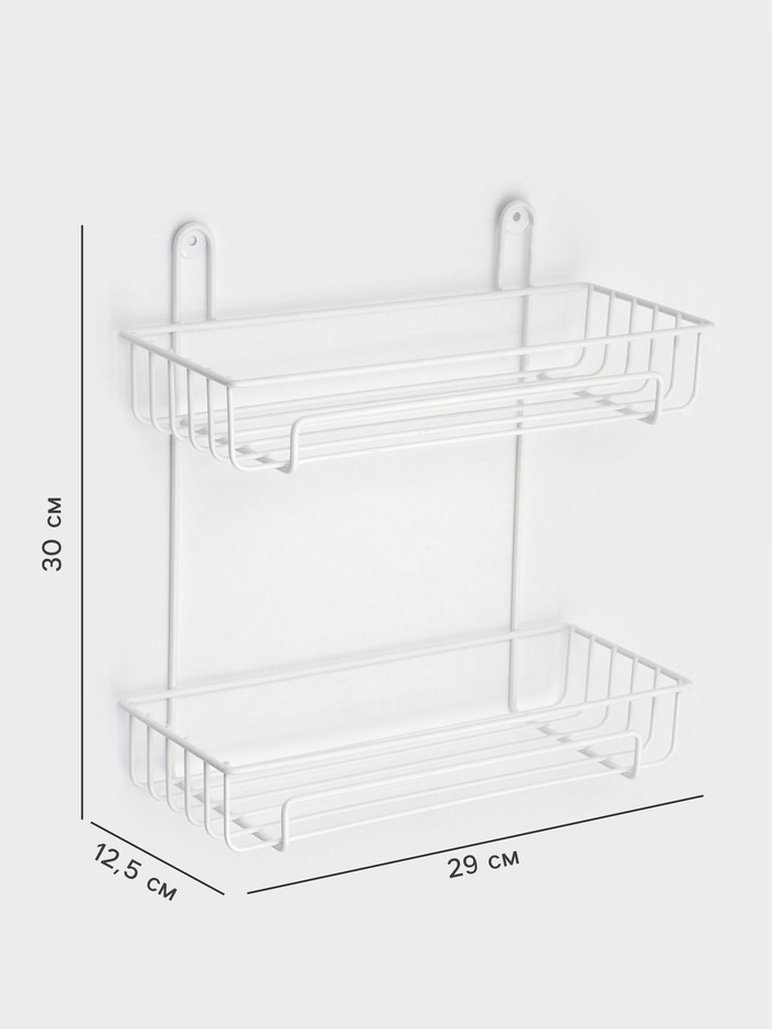 Полка для ванной прямоугольная, 2-х ярусная, 29*12,5*30 см, цвет белый