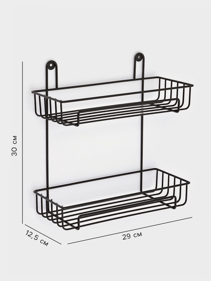 Полка для ванной прямоугольная, 2-х ярусная, 29*12,5*30 см, цвет черный