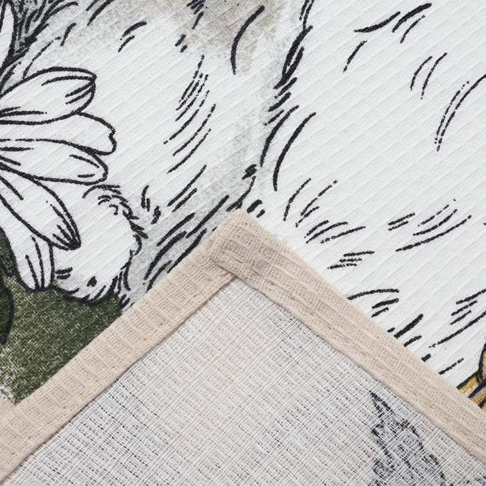 Это кухонное полотенце с милым рисунком создаёт уютное настроение каждый день и станет приятным знаком внимания к празднику. Плотная вафельная ткань из хлопка хорошо впитывает влагу, быстро сохнет и служит долго.