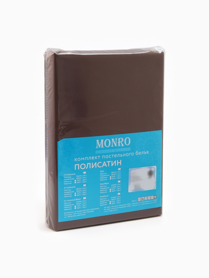 Постельное бельё 1.5-спальное «Монро», полисатин, цвет шоколадный