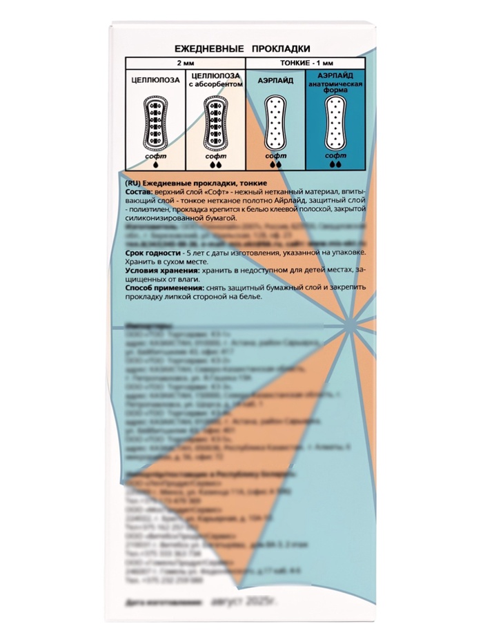 Анатомическая форма способствует естественному прилеганию к телу, благодаря чему прокладка удобно располагается и не мешает движениям. Использование аэрлайда в структуре изделия помогает эффективно распределять влагу и поддерживать ощущение сухости, снижая вероятность дискомфорта при длительном ношении.