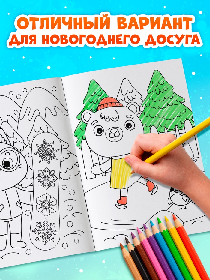 Комплект раскрасок словно открытка, которая приглашает ребёнка в мир новогодних историй. Каждая страница — это чистый холст, где маленький художник может воплотить свои идеи. Раскрашивание становится чем-то большим, чем просто увлечение: это возможность создать свой собственный праздник, добавляя красок в зимние сюжеты. Процесс похож на создание новогодней открытки, только вместо готового образца — свобода фантазии.