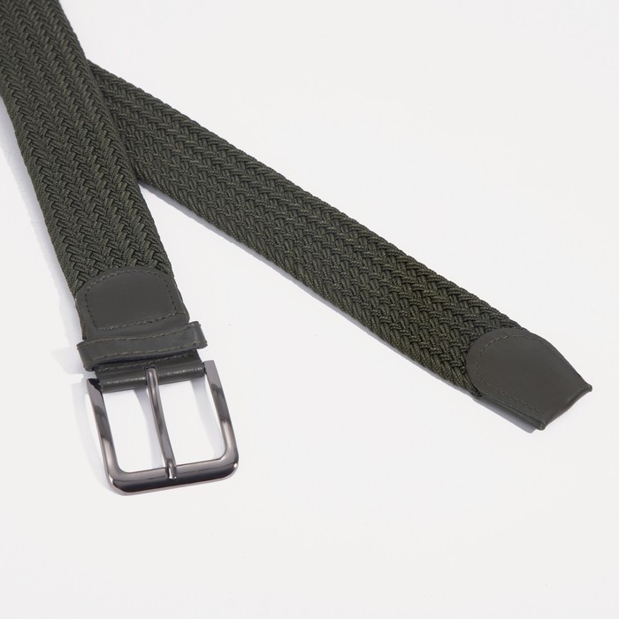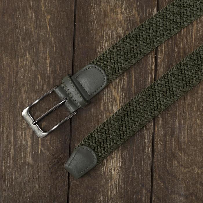 Ремень мужской, ширина 4 см, резинка плетёнка, пряжка металл, цвет хаки