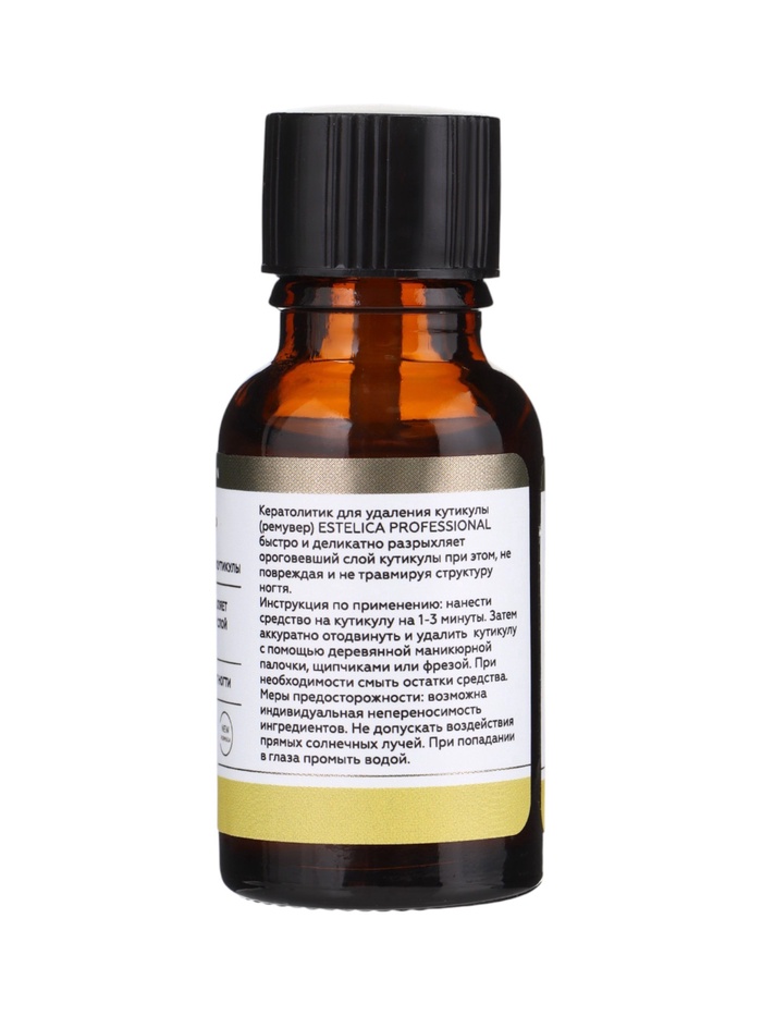 ESTELICA PROFESSIONAL, ремувер для удаления кутикулы 15 мл — профессиональное средство для деликатного размягчения огрубевшего слоя кутикулы, не повреждающее и не травмирующее ногтевую пластину. Подходит для любых видов маникюра и педикюра, обеспечивая аккуратную и безопасную обработку кутикулы.