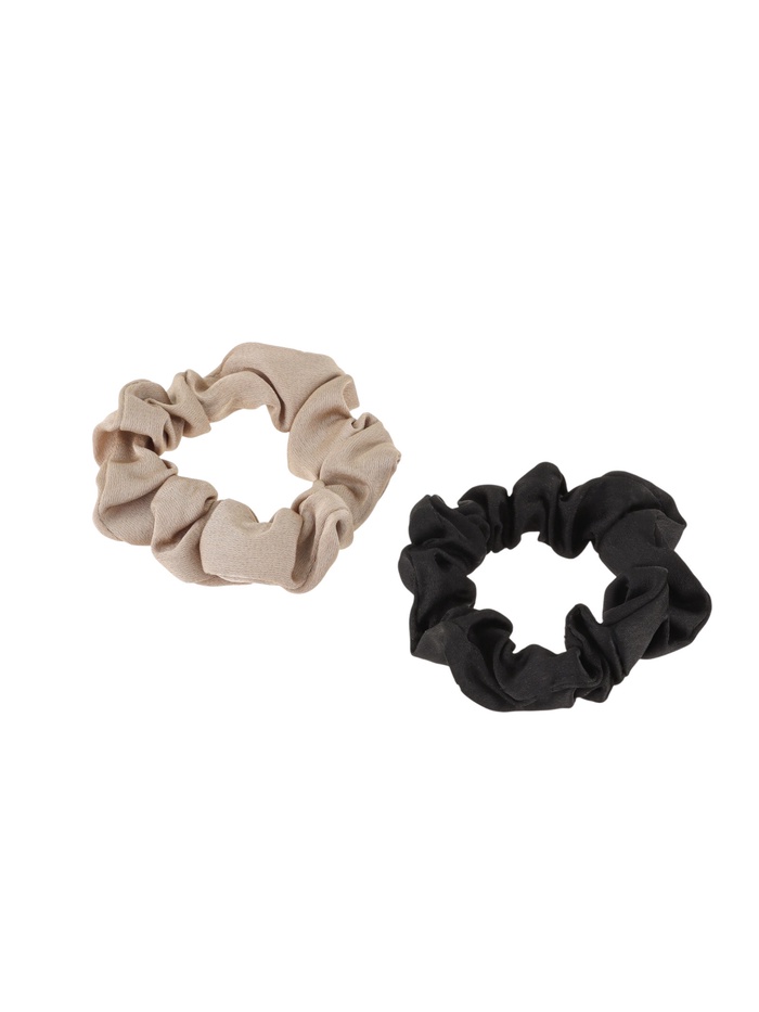- Набор из двух нейтральных цветов: В комплекте — черная и бежевая резинки. Эти цвета легко комбинируются с любым гардеробом и подходят под разные оттенки волос.