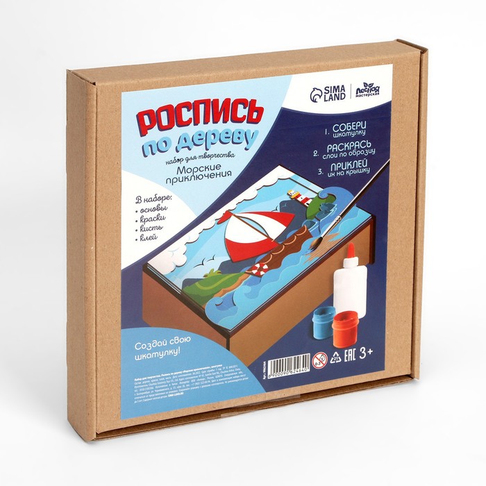- В комплект входят деревянные заготовки, краски, клей и кисточка, для прочности шкатулки вы можете использовать клей при сборке.