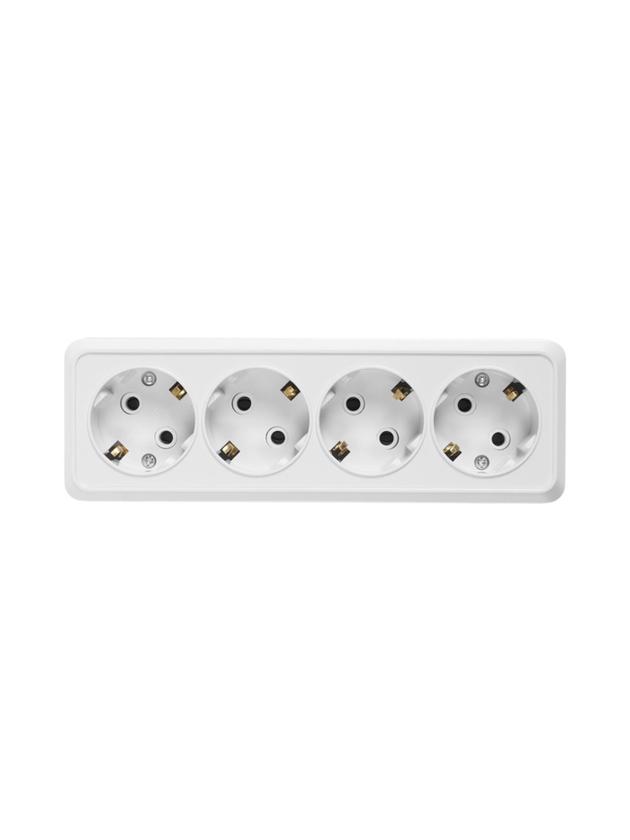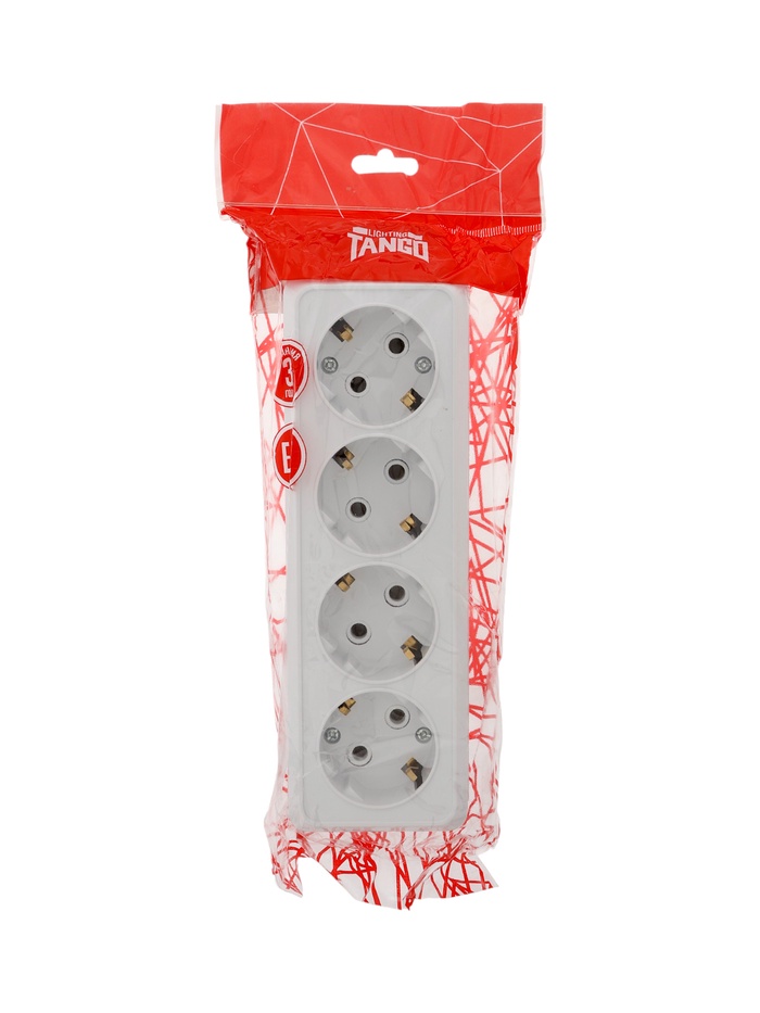 Розетка четырехместная TANGO, 16 А, 250 В, IP 20, с заземлением, огнеупорный ABS-пластик, белая 1098