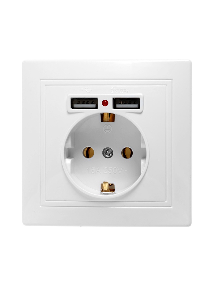Розетка одноместная с 2×USB TANGO, 16 А, 250 В, IP 20, с заземлением, белая