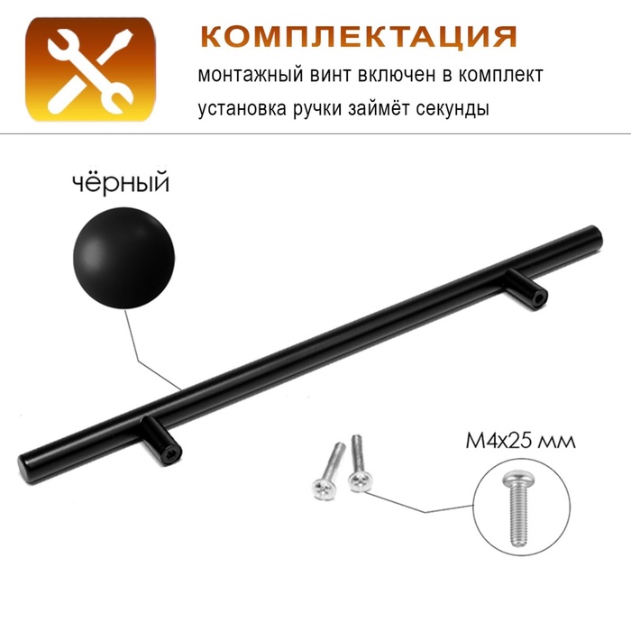 Ручка-рейлинг CAPPIO FRIDA, нержавеющая сталь, d=12 мм, м/о 224 мм, чёрная, 4 шт.