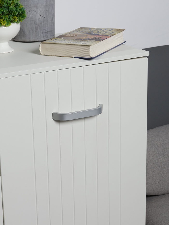 Данная дверная ручка представляет собой неподвижную скобу, которая крепится к поверхности мебели с помощью двух винтов. Модель выполнена из прочного алюминия и имеет матовый серебристый цвет.