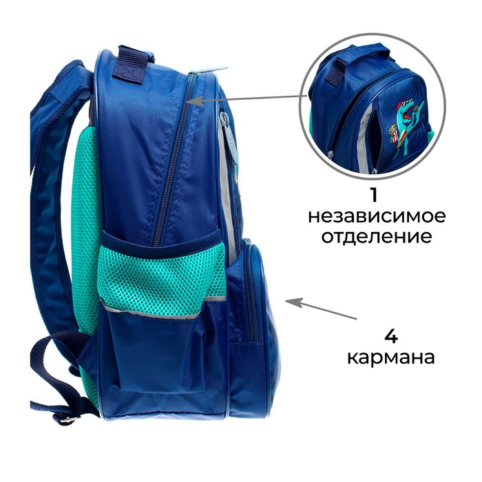 Ученический ранец для детей младшего школьного возраста предназначен для переноски личных вещей и школьно-письменных принадлежностей. Ранец выполнен из прочного непромокаемого материала с покрытием ПВХ. Оригинальный дизайн на фронтальной поверхности изделия.