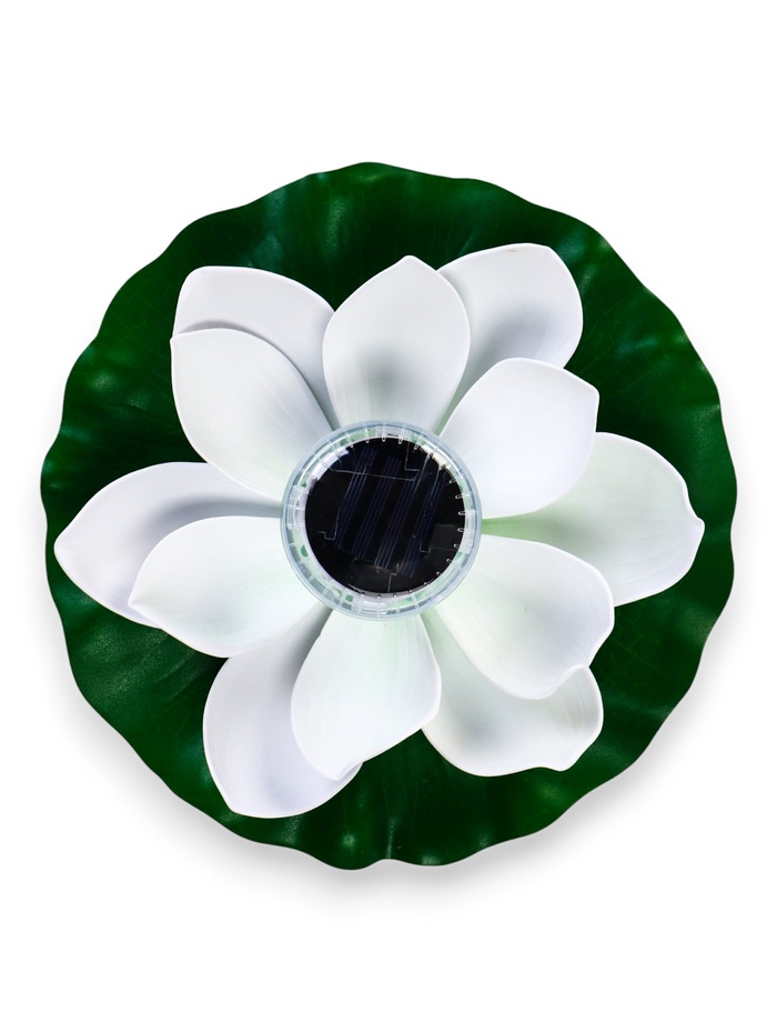 Садовый светильник для водоемов 28 х 28 х 9 см на солнечной бат-е "Лотос" бел N011