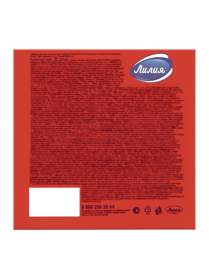 Салфетки бумажные «Лилия» 33×33 см, цвет «Красный», 2-слойные, 20 листов — это универсальное решение для сервировки стола, которое сочетает практичность и выразительный внешний вид. Насыщенный красный цвет придаёт оформлению яркость и праздничное настроение, делая такие салфетки отличным выбором как для повседневного использования, так и для особых случаев.
