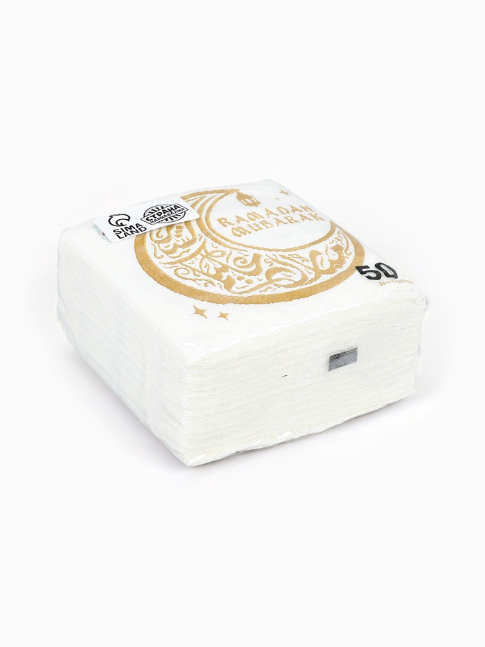 Салфетки бумажные однослойные «Ramadan Mubarak», белые с золотом, 24×24 см, 50 шт.