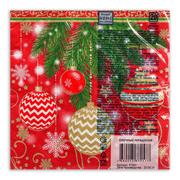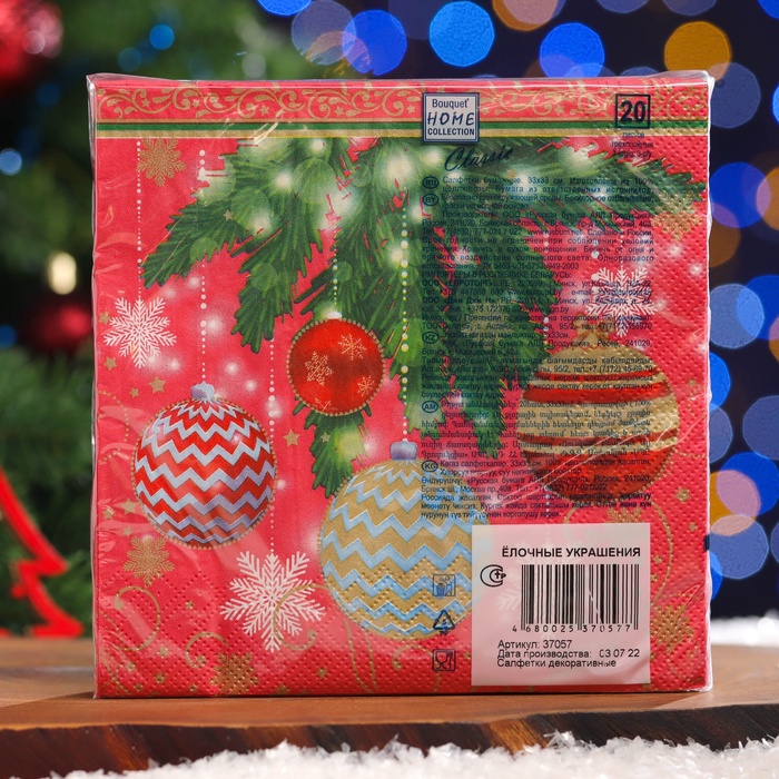 Салфетки новогодние бумажные Home Classic «Ёлочные украшения», 3 слоя, 33х33 см, 20 шт