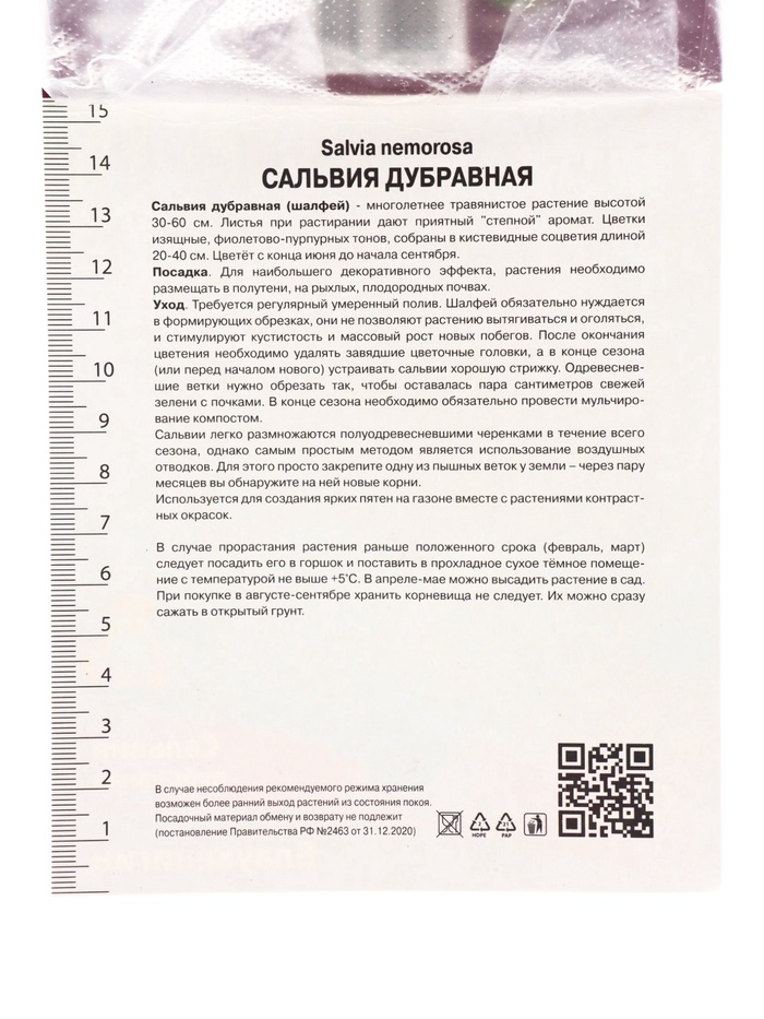 Многолетнее декоративное и лекарственное растение. Сальвия дубравная «Блаукенигин» — это проверенные семена, дающие сильные всходы и устойчивые к внешним воздействиям растения. Высота взрослого кустика до 80 см. Плотные серо-зеленые листья контрастируют с ярко-синими цветами, создавая эффектный вид. Используется в садоводстве, ландшафтном дизайне и для лекарственных целей. Засухоустойчивый и морозостойкий сорт, не требователен к почвам, не нуждается в частом поливе. Привлекает пчел и бабочек, что способствует естественному опылению сада.