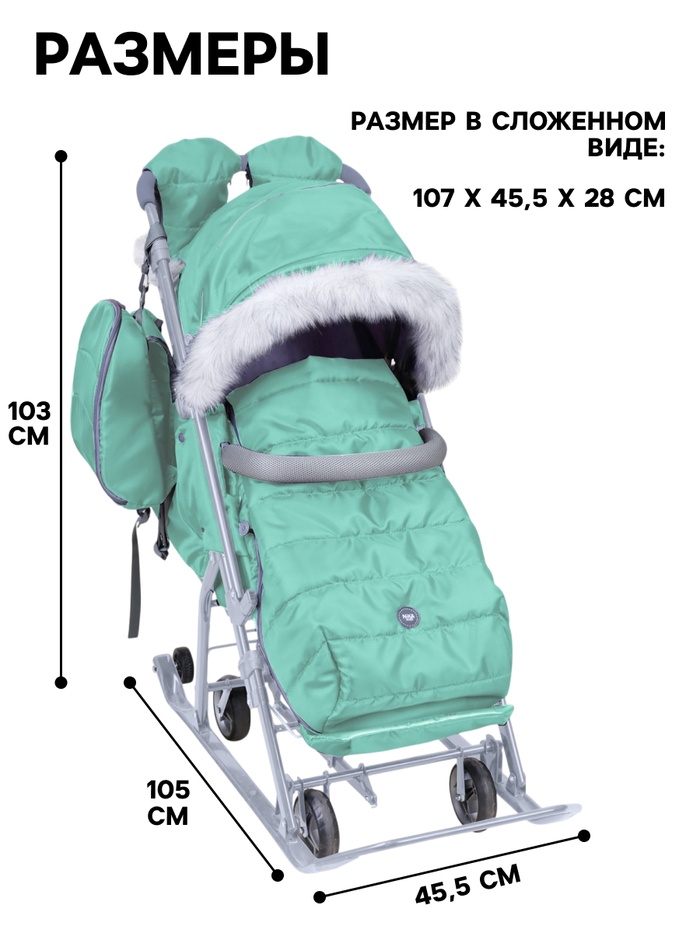 Тепло и комфорт на зимней прогулке! Санки-коляска «Ника детям 7-5SK» в мятном цвете — это удобный транспорт для малыша с утеплёнными аксессуарами. Широкие полозья и колёсная база обеспечивают плавный ход по снегу и асфальту, а продуманная конструкция делает прогулки приятными в любую погоду.