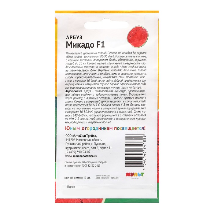 Гибрид Микадо F1 – хорошо себя зарекомендовал как при выращивании на капельном поливе, так и на богаре. На капельном поливе масса плода может достигать 14-15 кг. Прекрасно лежит в поле и хорошо транспортируется на большие расстояния без потери высоких вкусовых качеств.