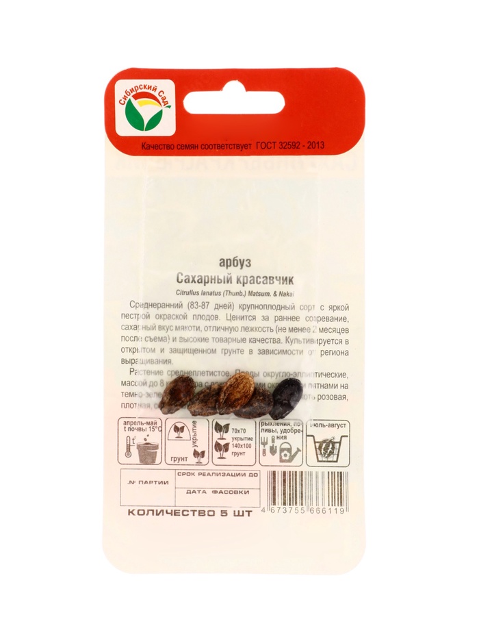 Семена Арбуз «Сахарный красавчик», 5 шт., «Сибирский сад»