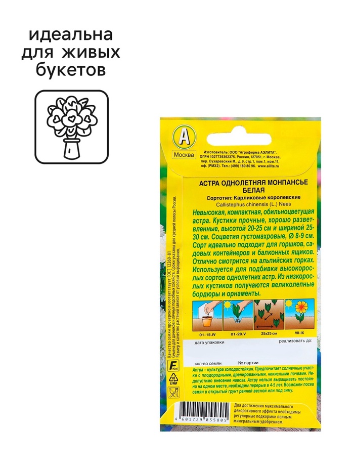 "Прекрасный сорт среднего срока цветения. Принадлежит к сравнительно новому сортотипу коготковых астр. Образует узкий пирамидальный куст-букет высотой до 80 см. Одновременно на кусте раскрыты более10 оригинальных густо махровых соцветий диаметром до 10 см, с красиво уложенными лепестками. Сорт универсального назначения – отлично украшает цветники и дает ценную срезку. Устойчив к фузариозу.