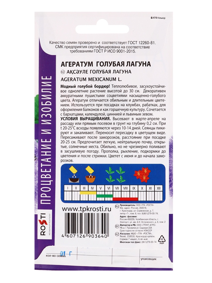Модный голубой бордюр! Теплолюбивое, засухоустойчивое однолетние растение высотой до 30 см. Декоративен аккуратными пушистыми соцветиями насыщенно-голубого цвета. Агератум отличается обильным и длительным цветением. Используется при посадках на клумбах, рабатках, для оформления балконов и как горшечную культуру. Сочетается с бархатцами, календулой, циннией и львиным зевом.