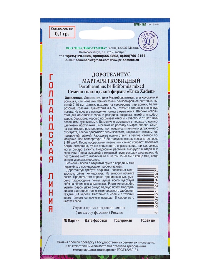 Однолетник. Доротеантус ( или Мезембриантемум, или Хрустальная ромашка, или Ромашка Левингстона) - почвопокровное растение, высотой 7-10 см. Цветки, похожие на немахровые маргаритки, белые, розовые, красные, диаметром 3-4 см, открыты только в солнечную погоду. На ночь и в пасмурную погоду закрываются.