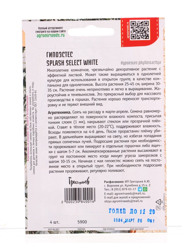 Семена цветов Гипоэстес Сплэш Селект Белый (Splash Select White)(PanAmerican Seed) 4шт. 12.29 г. 10