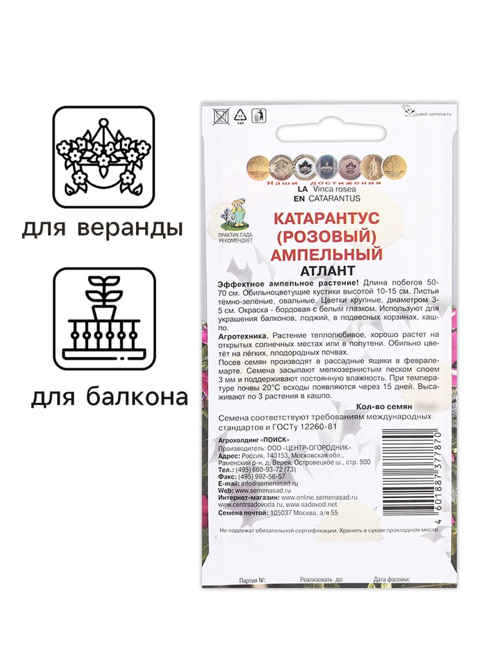 Эффектное ампельное растение! Длина побегов 50-70 см. Обильноцветущие кустики высотой 10-15 см. Листья тёмно-зелёные, овальные. Цветки крупные, диаметром 3-5 см. Окраска - бордовая с белым глазком. Используют для украшения балконов, лоджий, в подвесных корзинах, кашпо.Агротехника. Растение теплолюбивое, хорошо растет на открытых солнечных местах или в полутени. Обильно цветёт на лёгких, плодородных почвах. Посев семян производят в рассадные ящики в феврале-марте. Семена засыпают мелкозернистым песком слоем 3 мм и поддерживают постоянную влажность. При температуре почвы 20°C всходы появляются через 15 дней. Высаживают по 3 растения в кашпо. Семена соответствуют требованиям международных стандартов и ГОСТу РФ 12260-81
