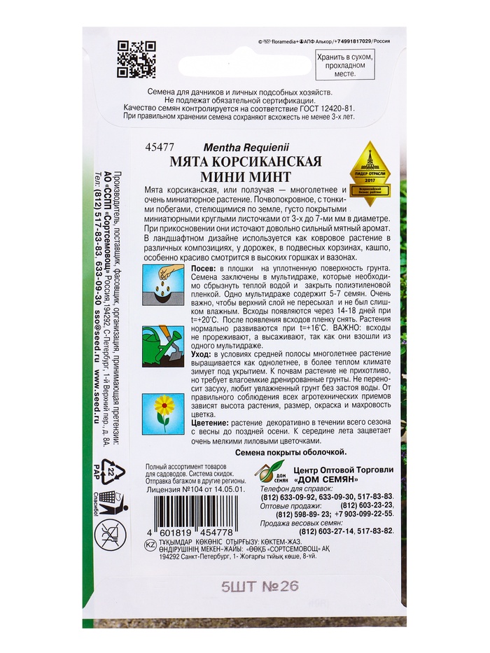 Семена цветов Мята Корсиканская Мини Минт 5 шт
