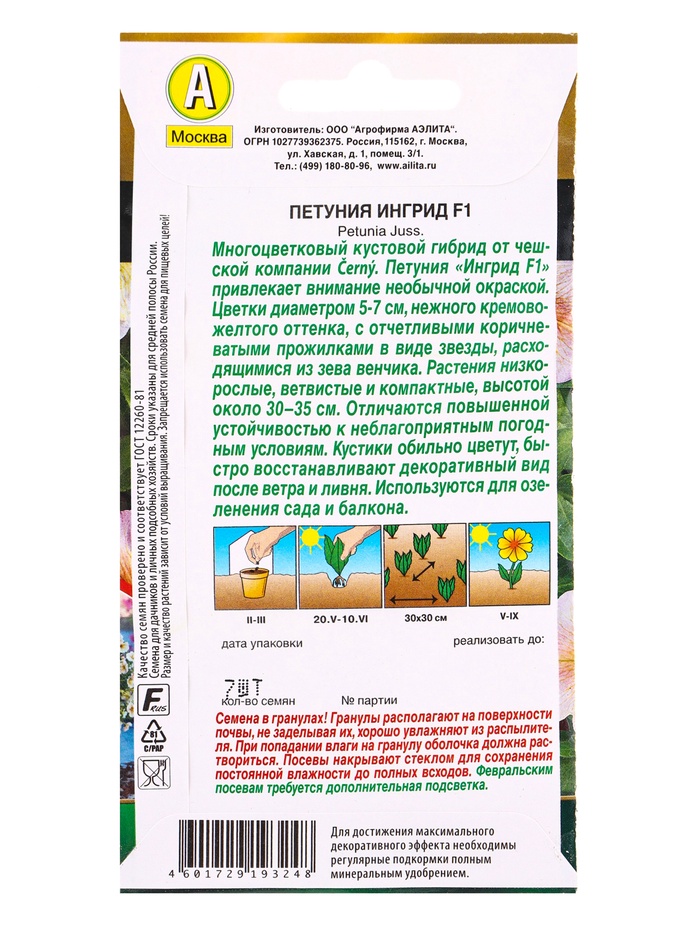Семена цветов Петуния Ингрид F1 многоцветковая (драже) С. Cerny , Ц/П,7 шт.