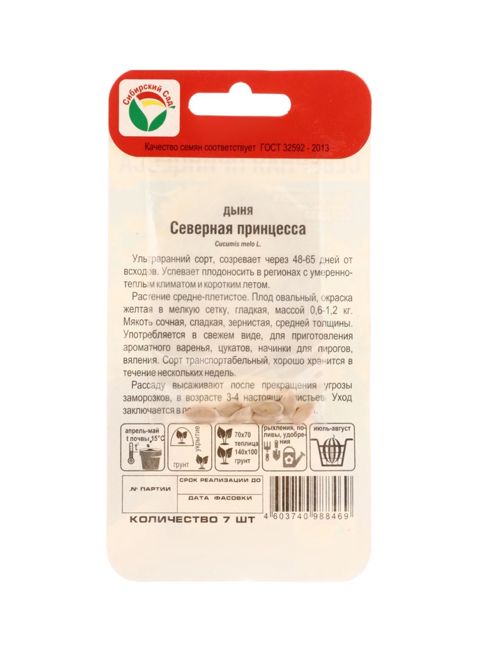 Семена Дыня «Северная принцесса», 7 шт., «Сибирский сад»