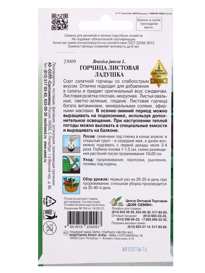 Семена Горчица салатная Ладушка 350 шт