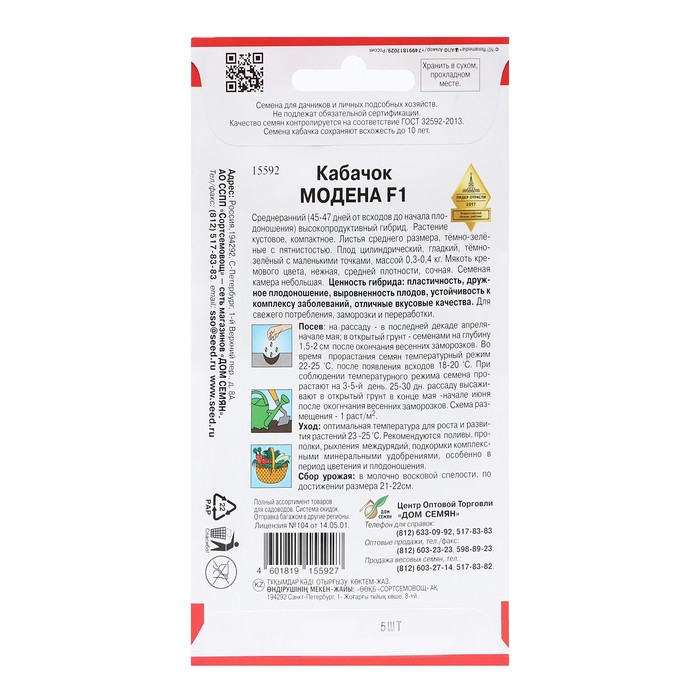 Высокоурожайный среднеспелый гибрид цуккини (55-60 дней) Растение кустовое, сильное, открытого типа. Плоды цилиндрические, темно-зеленого цвета с глянцевым блеском. Длина плода 18-22 см, вес 300-400 гр. Сохраняет высокую товарность после уборки. Отличные вкусовые качества во всех видах переработки, в т.ч. после заморозки.