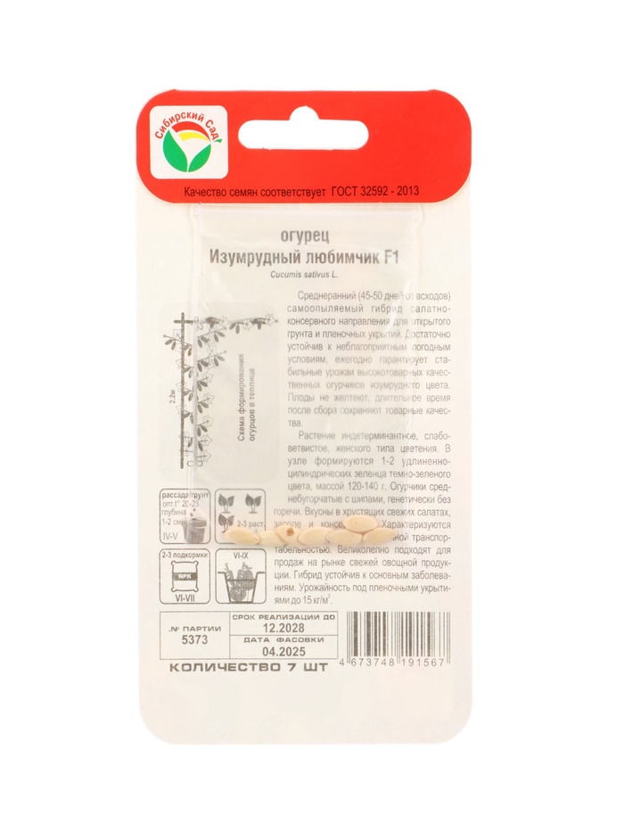 Семена Огурец Изумрудный любимчик F1 7шт