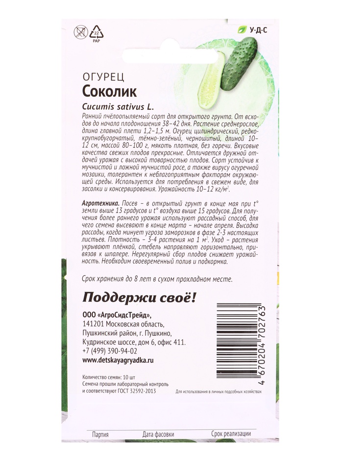 Семена Огурец Соколик 10 шт