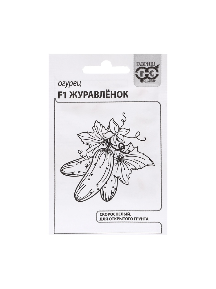 Раннеспелый (48-50 дней), пчелоопыляемый гибрид. Растение длиноплетистое, преимущественно женского цветения. Зеленцы эллипсовидные, длиной 10-12 см, массой 80-110 г, тёмно-зелёные, крупнобугорчатые, черношипые, плотные, хрустящие. Урожайность 5,6-6,5 кг/м2. Плоды гибрида Журавленок овально-цилиндрические, ярко-зеленого цвета с размытыми светлыми полосами. Поверхность матовая, пупырчатая, с черными точками. Мякоть отличается особой плотностью и хрусткостью, отличными вкусовыми качествами, без горечи. Шкурка плодов тонкая. Плоды достигают в длину до 12 см, а их вес- 110 г. Применение универсальное: салаты, консервация, засолка. Урожайность высокая: с 1 кв. м. можно собрать 10 кг огурцов.
