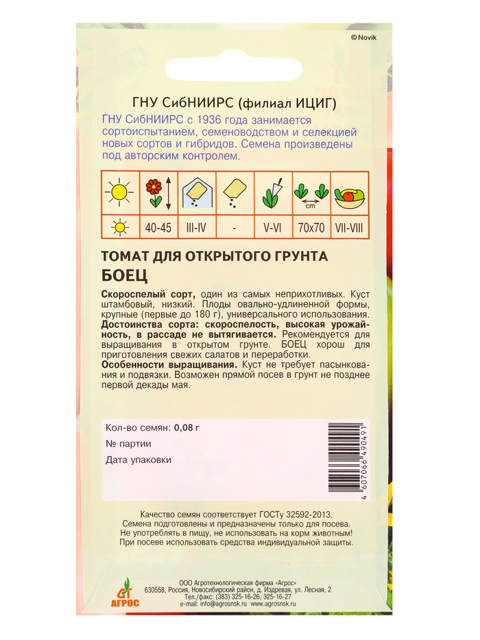 Особенности выращивания: посев на рассаду проводят в марте или апреле. Сорт «Боец» подходит для тех, кто ценит ранние урожаи и простую агротехнику. Получайте выровненные сливки универсального назначения с минимальными трудозатратами!
