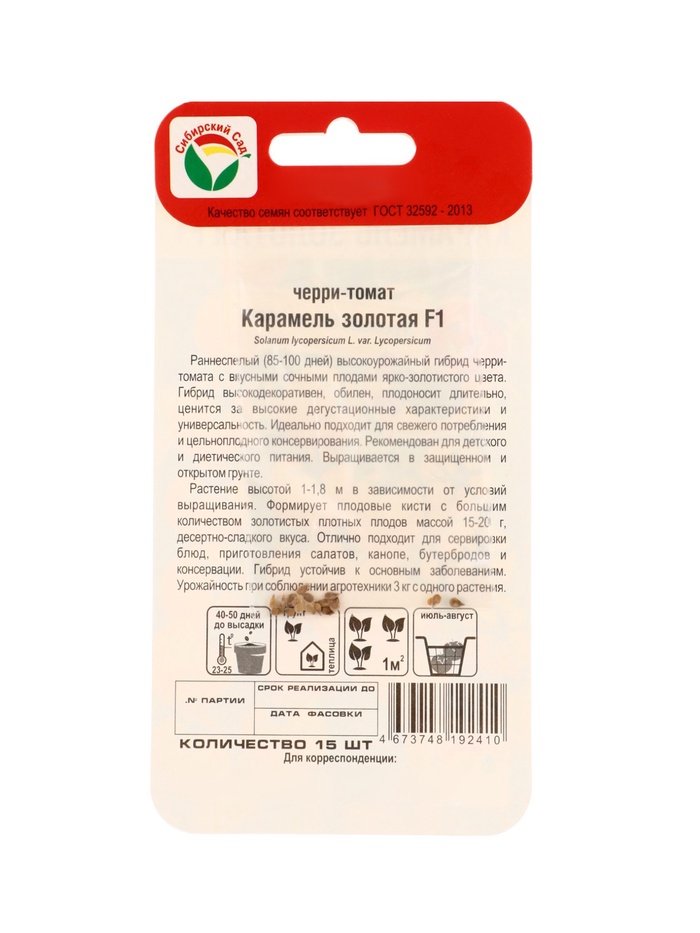 Семена Томат Черри «Карамель золотая», F1, 15 шт., «Сибирский сад»