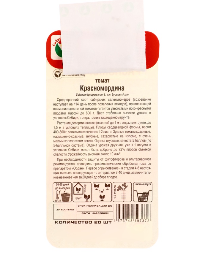 Семена Томат «Красномордина» 20 шт. «Сибирский сад»