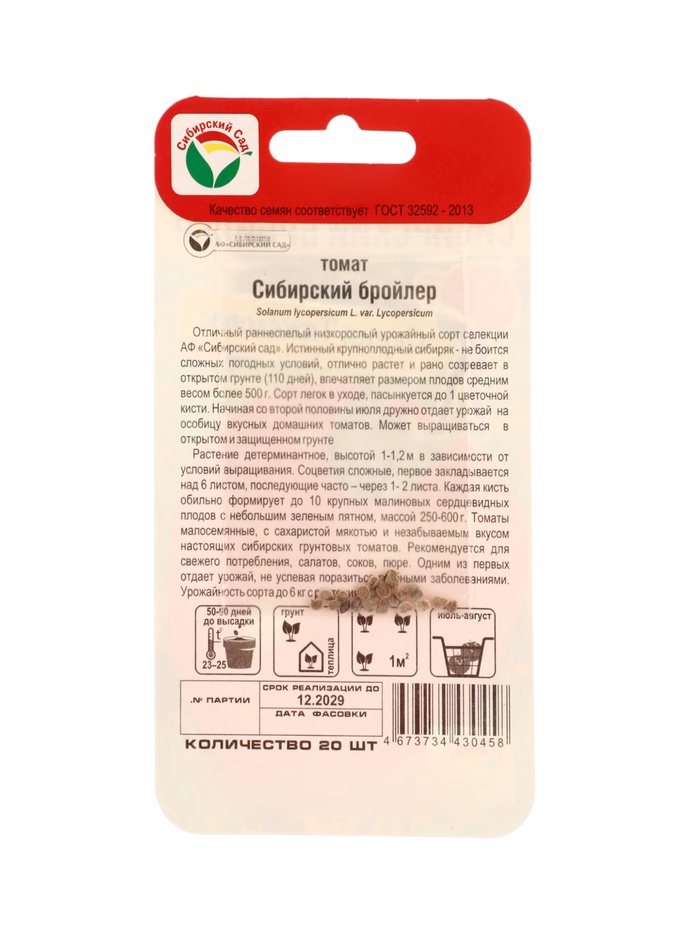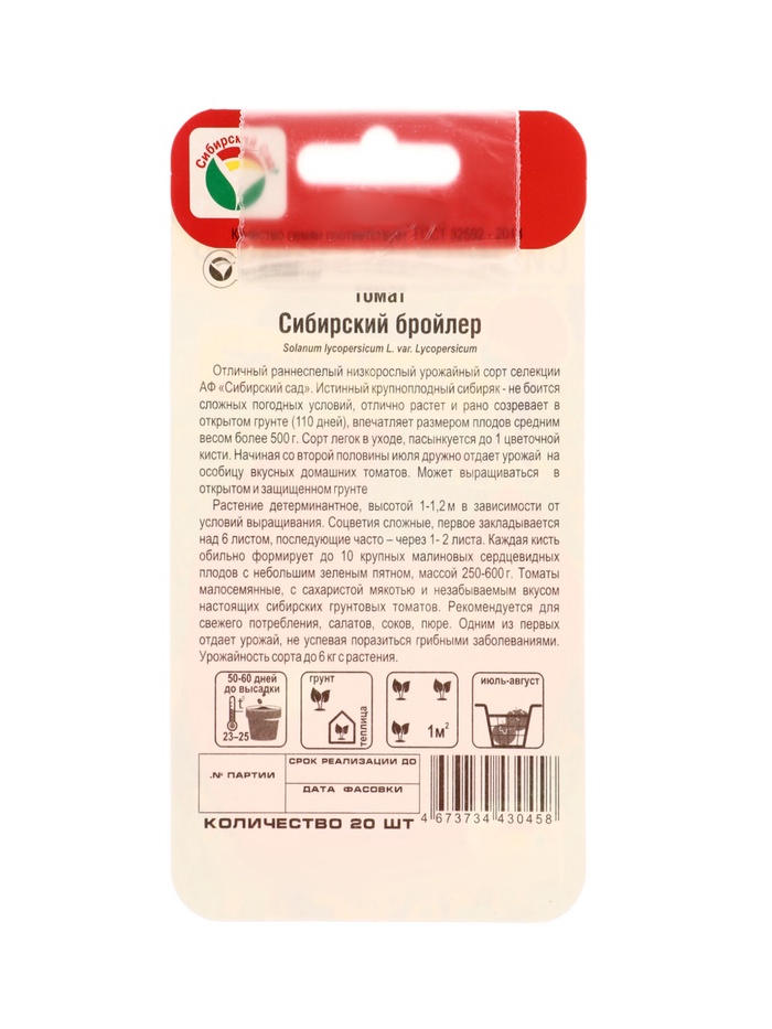 Семена Томат «Сибирский бройлер», 20 шт., «Сибирский сад»