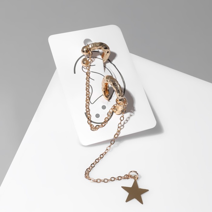 Серьга «Кафф» звезда на цепочке, цвет золото