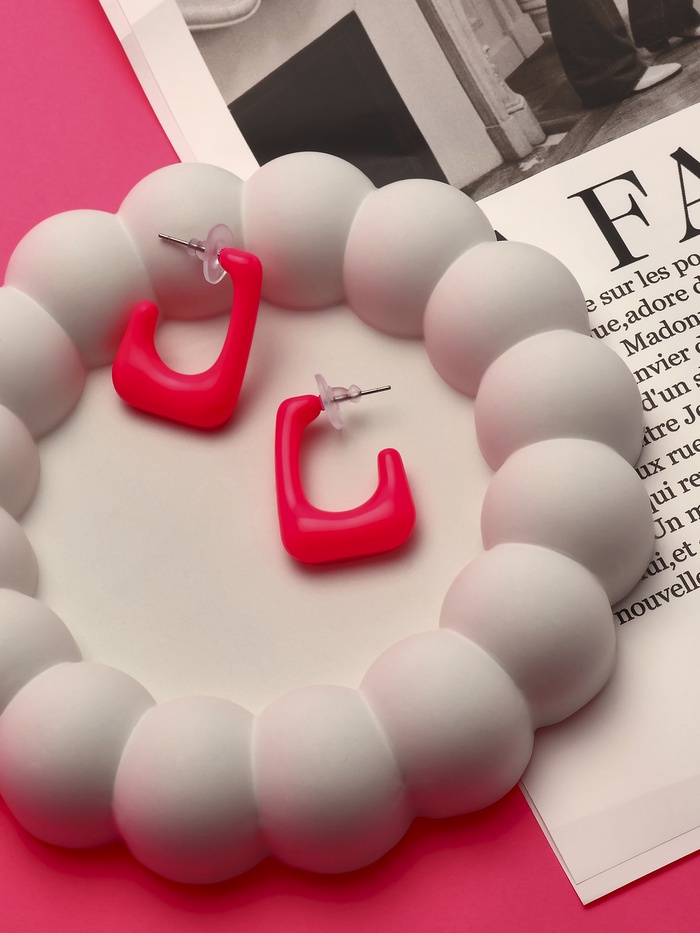Яркие серьги с акриловой рамкой насыщенного малинового оттенка на серебристой металлической основе — универсальный аксессуар длиной 3 см для женщин и девочек. Их выразительный цвет добавляет свежести и акцента в любой образ, подходящий для повседневного ношения и праздничных событий, таких как День рождения и 8 Марта.