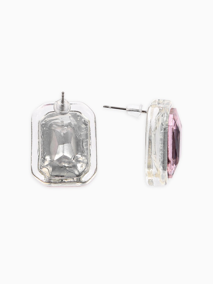 Серьги "Кристалл" прямоугольник грань, цвет прозрачно-розовый