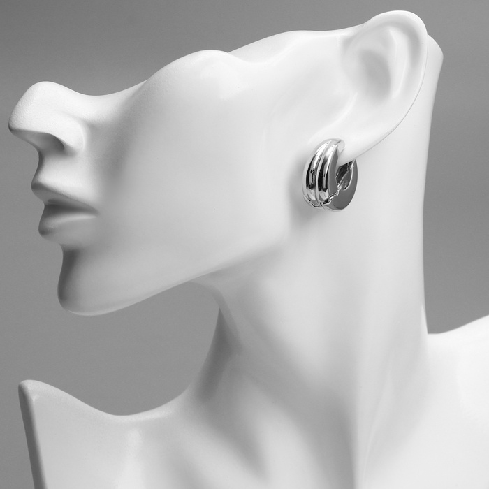 Серьги металл «Аккорд» двойной круг, цвет серебро