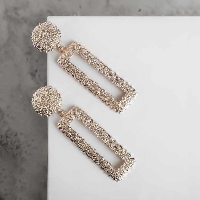Серьги металл «Карибы» длинный прямоугольник, цвет розовое золото