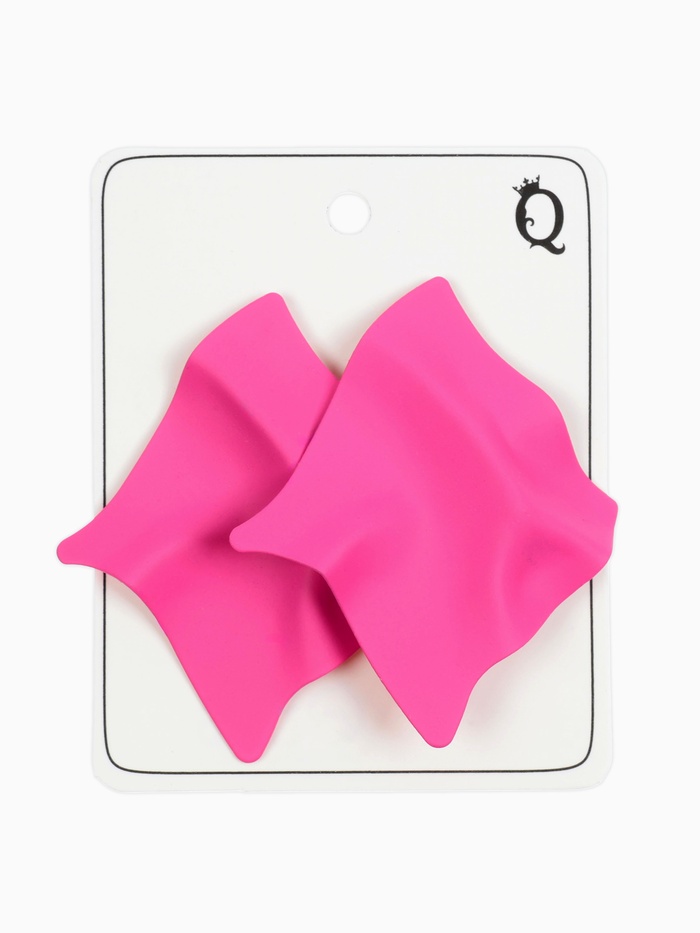 Малиново-розовые серьги в форме ромба на серебристой металлической основе придают образу выразительность и лёгкость. Их длина 5,5 см делает украшение заметным, но не перегруженным, что подходит женщинам, ценящим современный минимализм с ярким акцентом.