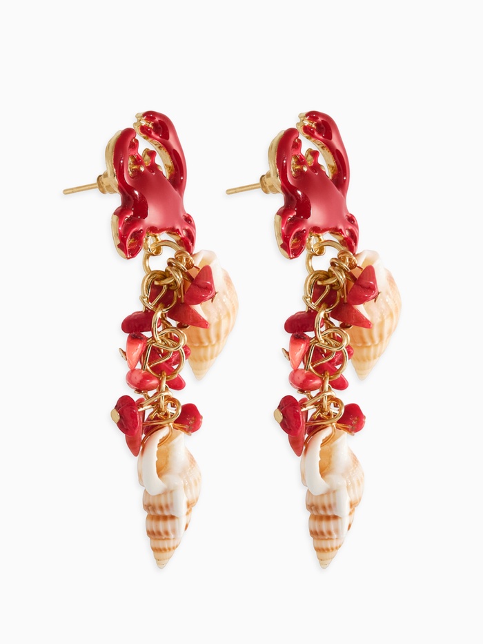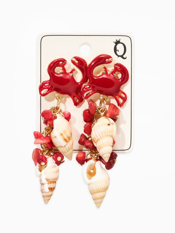 Серьги "Морской мир" краб с ракушками, цвет красный в золоте