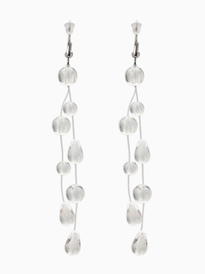 Серьги на леске "Капля росы", веточка, цвет белый в серебре