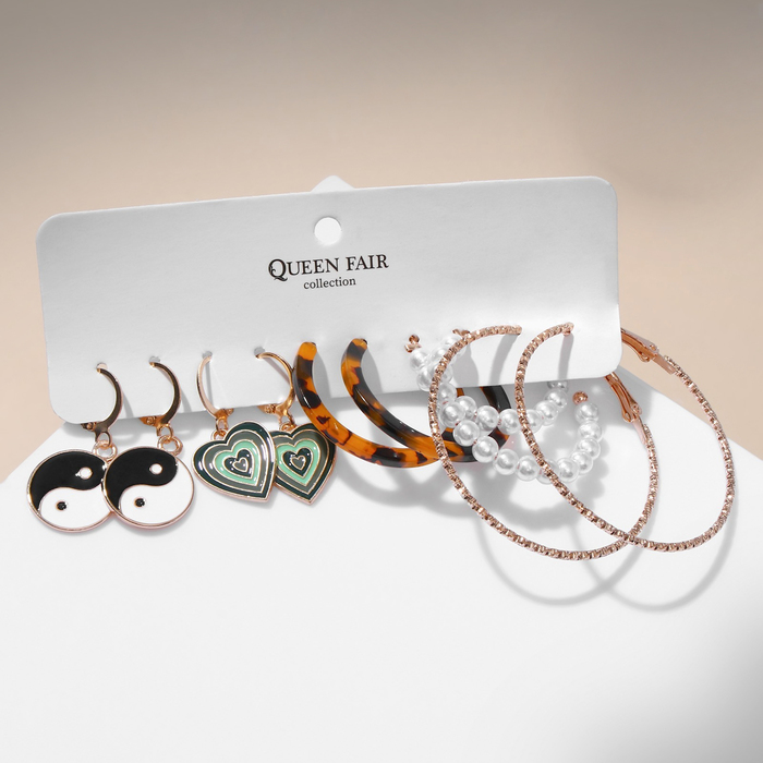 Серьги набор 5 пар «Леди» инь-ян, цветные в золоте